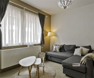 Gemoderniseerde woning met twee slaapkamers en koer. Centraal gelegen, dichtbij openbaar vervoer en scholen. Living met open keuken en koer op het gelijkvloers. Op de eerste verdieping zijn er twee slaapkamers en een badkamer. Er is ook nog een zolder.